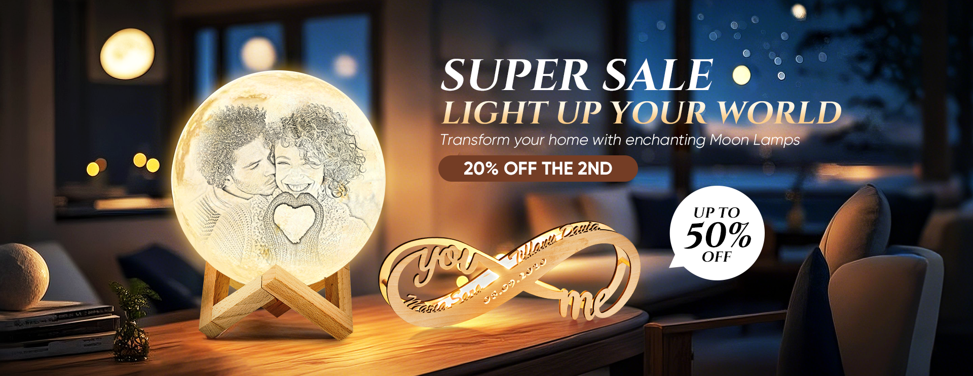 Valentine's Gift Custom 3D Printing Photo Moon Light With Your Text-For Anniversary-Tap 3 Colors(10-20cm) A$39.95