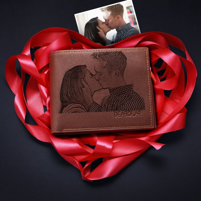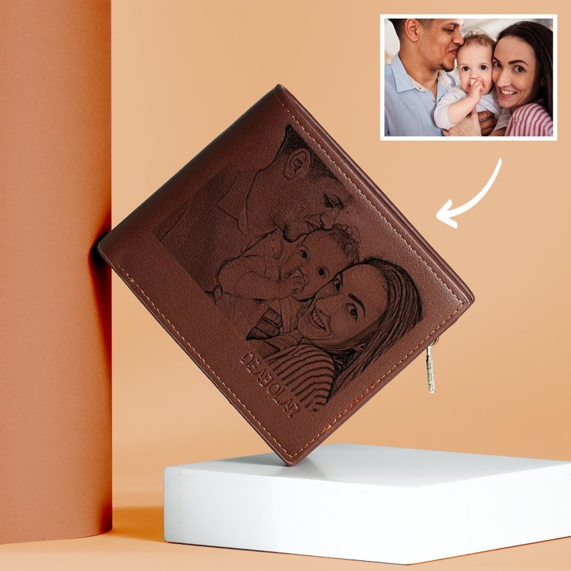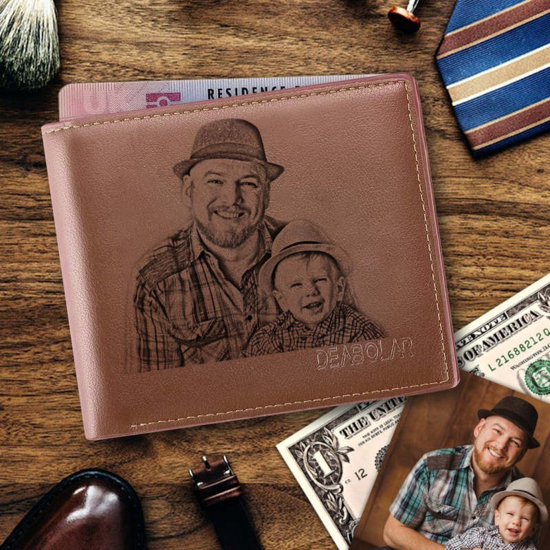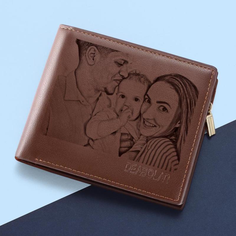 Custom Brown Trifold Leather Photo Wallet (Hot Sale)