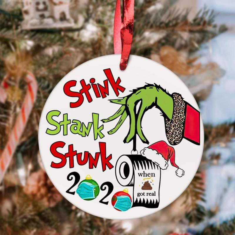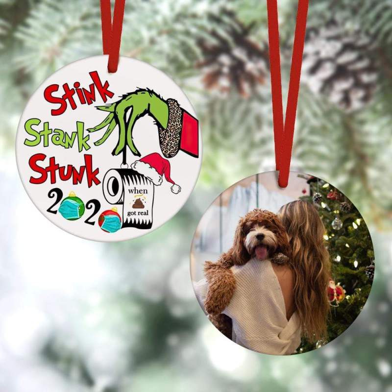 Custom Christmas Ornament Christmas Gifts 2 Sided - 2020 Stink Stank Stunk Grinch Hand(8cm x 8cm)
