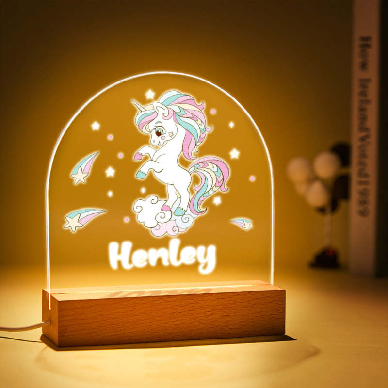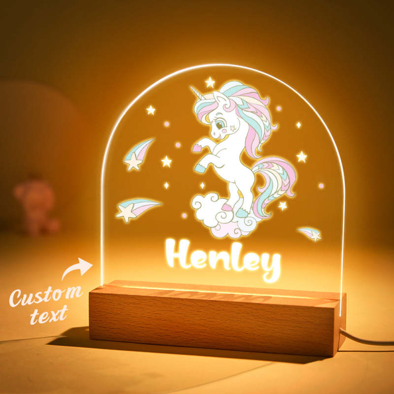Custom Colorful Unicorn Night Light with Name for Baby Girl Bedroom Decor