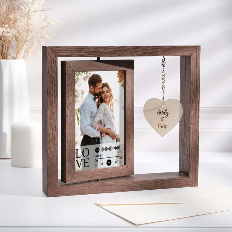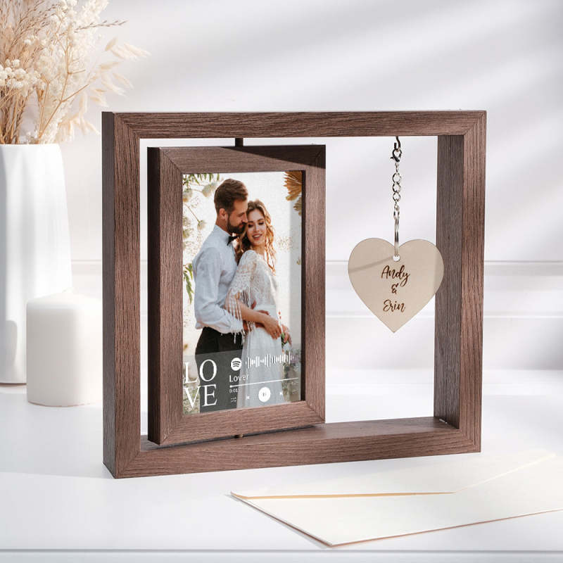 Custom Engraved Rotating Floating Picture Frames Double-Sided For Couple Personalised Engagement Gift