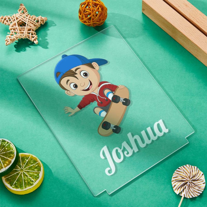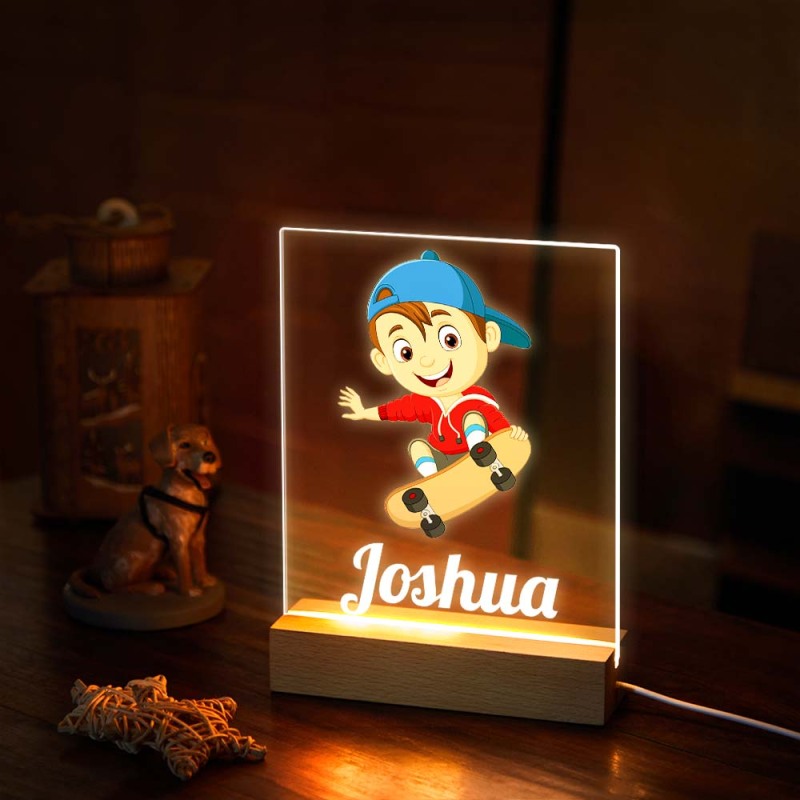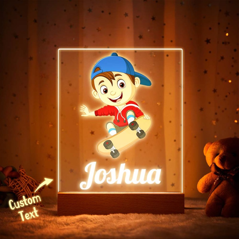 Custom Name Acrylic Night Light For Boy Play Skateboard LED Lamp Room Decor