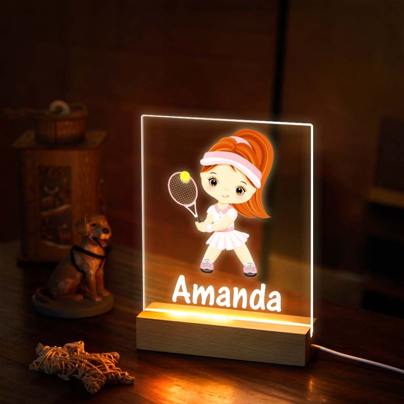 Custom Name Acrylic Night Light Play Badminton Girl For Kids Bedroom Decor