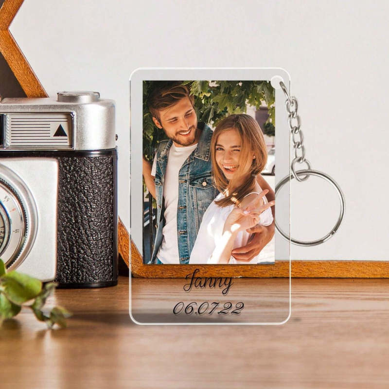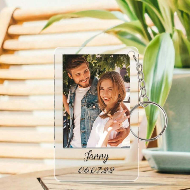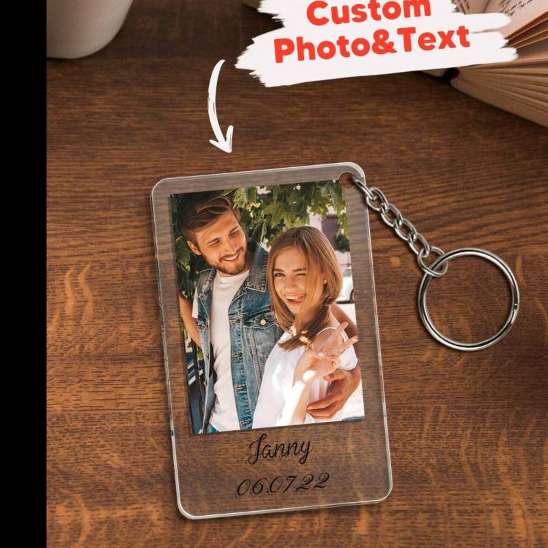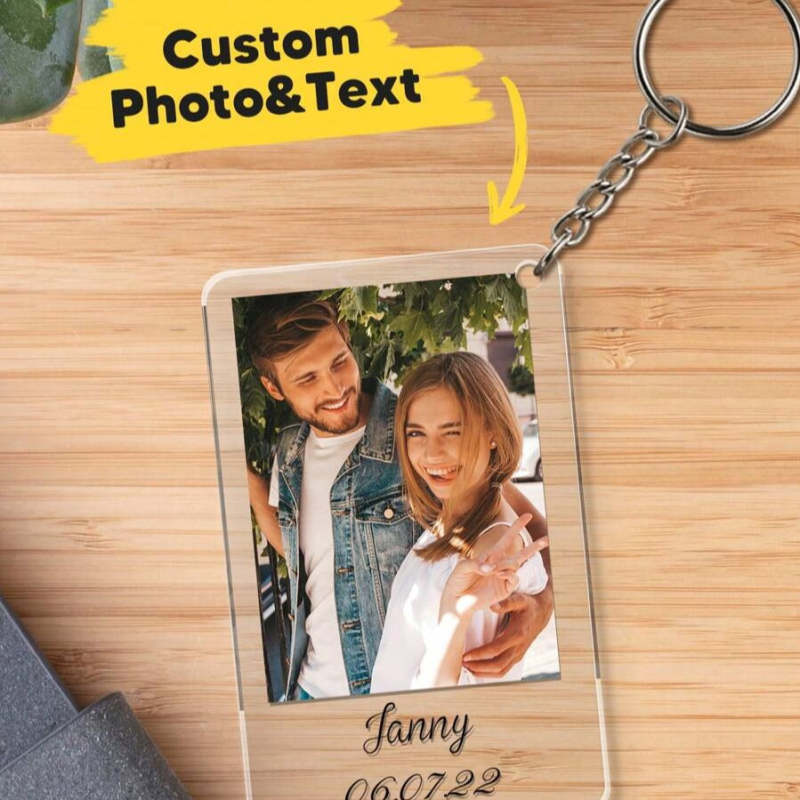 Custom Photo & Text Keychain for Boyfriend and Girlfriend Anniversary, Birthday, Romantic Couples Gift