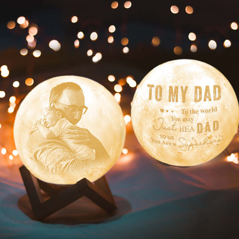 Father's Day Gift Magic 3D Personalised Photo Moon Lamp with Touch Control for Family To My Dad