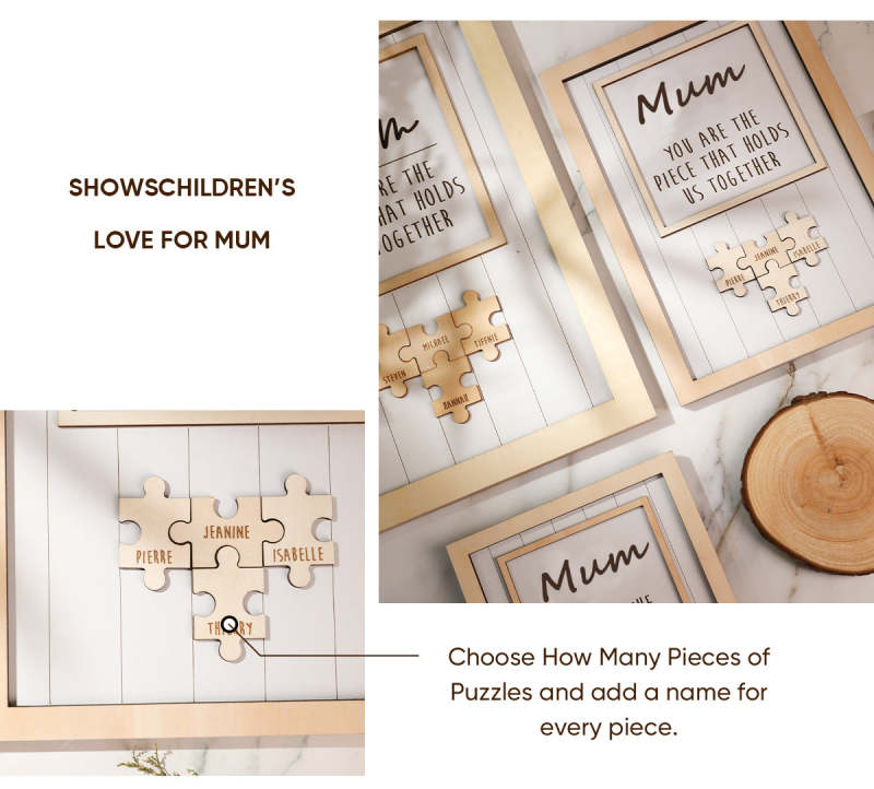 Custom Mom Wooden Puzzle Frame Personalised Engraved Name Decor Gift for Mother