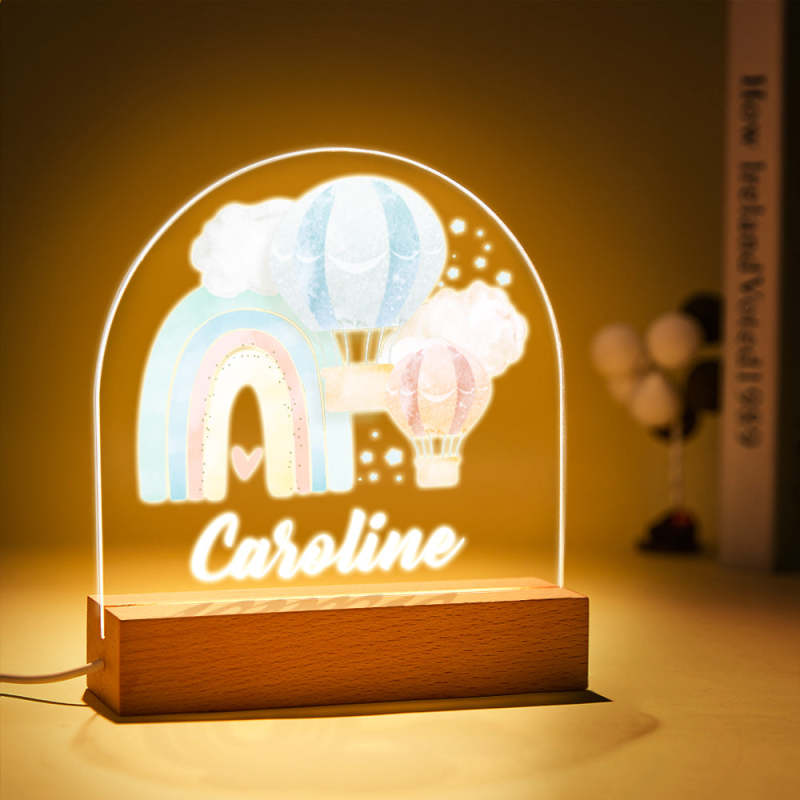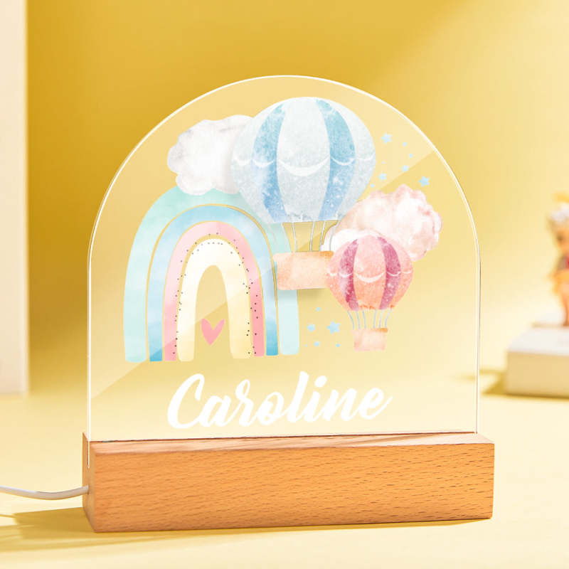 Personalized LED Night Light with Rainbow and Balloon for Baby Gifts Nursery Decor