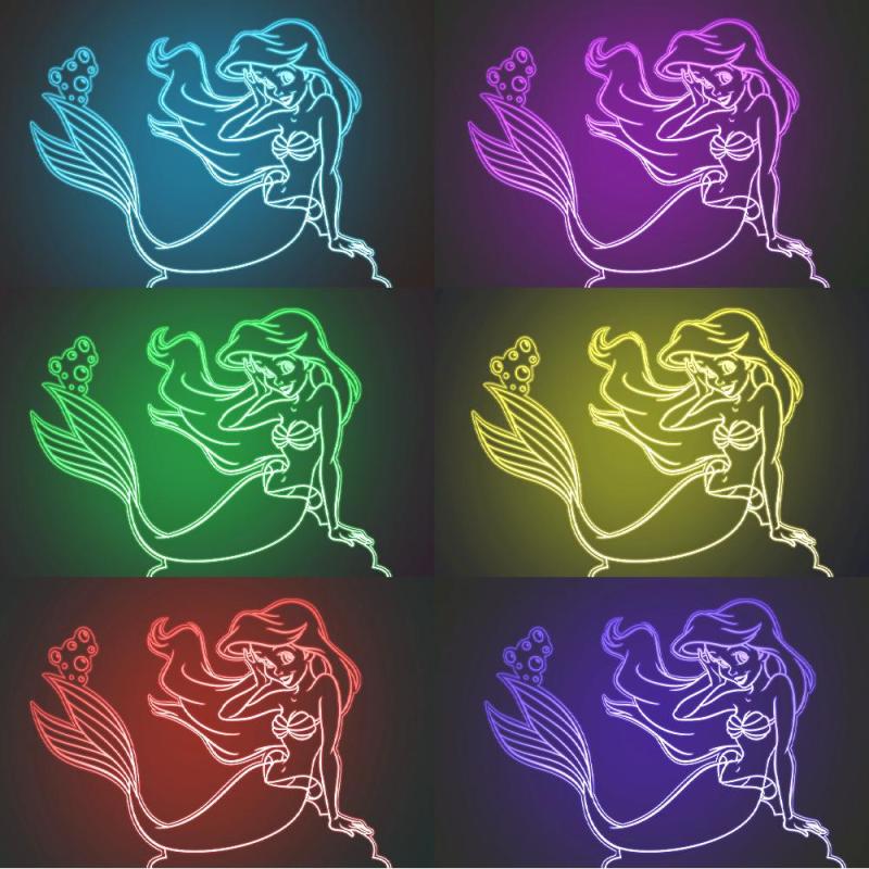Personalised Little Mermaid Night Light Bedroom Decor Girls Room Children's Lamps
