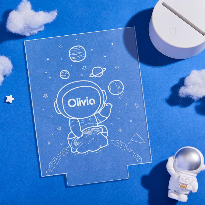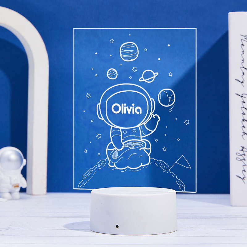 Personalised Name Sign LED Night Light Multi Colour Kids Astronaut Spaceman Space Bedroom