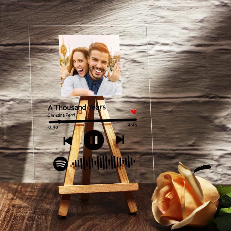 Spotify Acrylic Glass- Custom Spotify Code Music Plaque With Wooden Stand