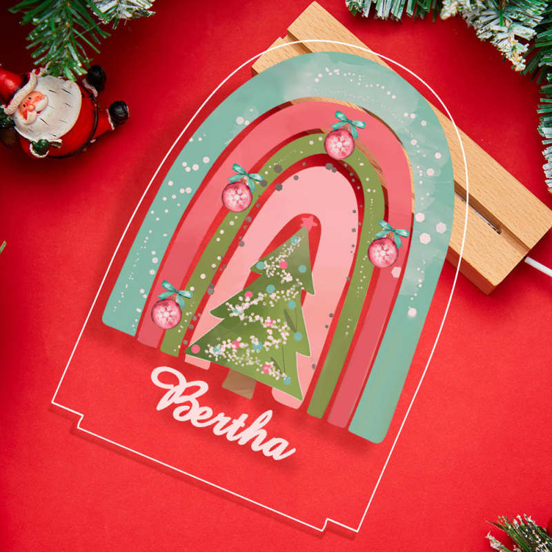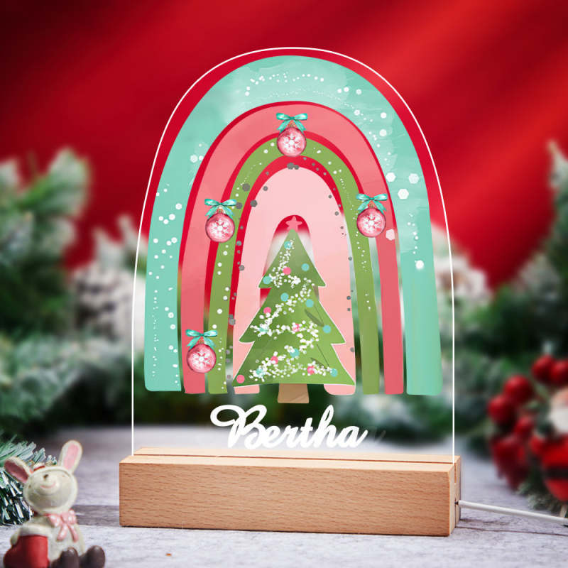 Christmas Rainbow with Green Tree Custom Name Night Lamp for Party Room Decor
