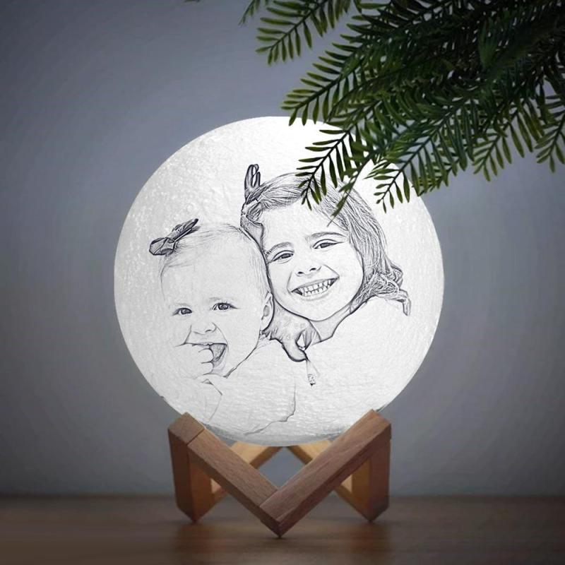 Custom Engraved 3D Photo Moon Lamp | Touch to Convert 2 Light Colors | Mother's Gift