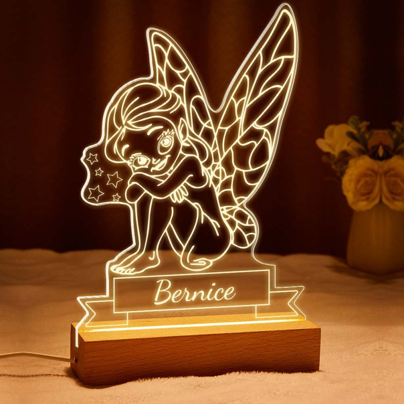 Custom Name Acrylic Night Light Personalised Lamp FAIRY Desk Lamp Gift for Girl or Adult