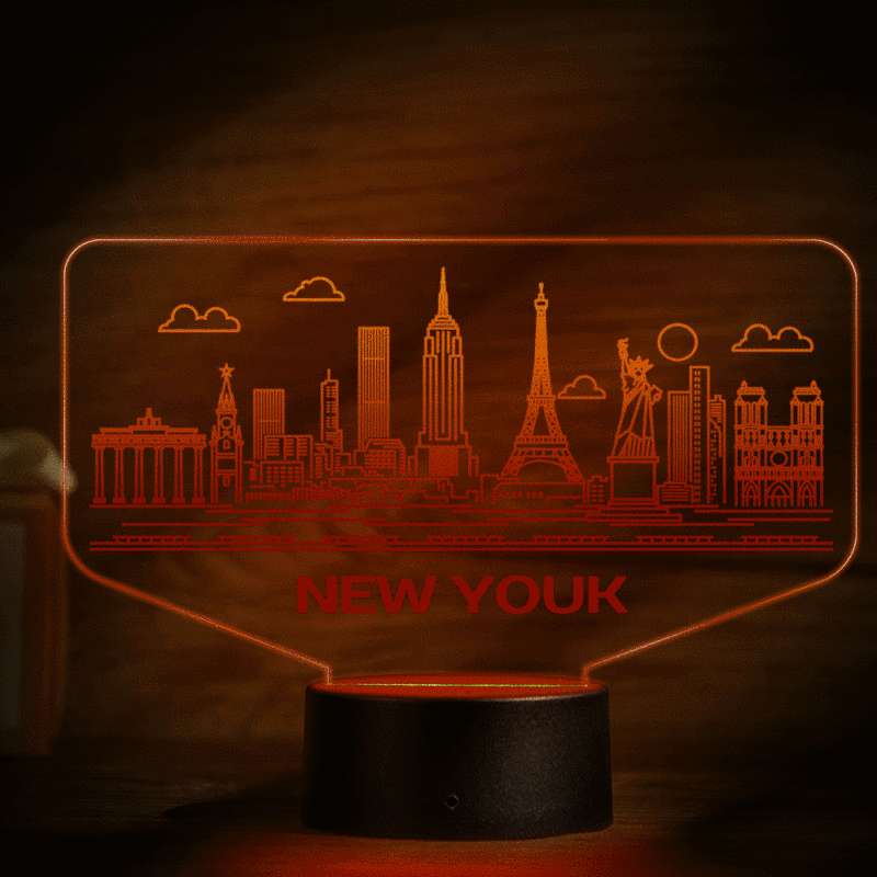 Custom Name New York City Building 3D Night Light Personalized Atmosphere Bedroom Table Lamp Lovely 7 Color Change 3D Night Light