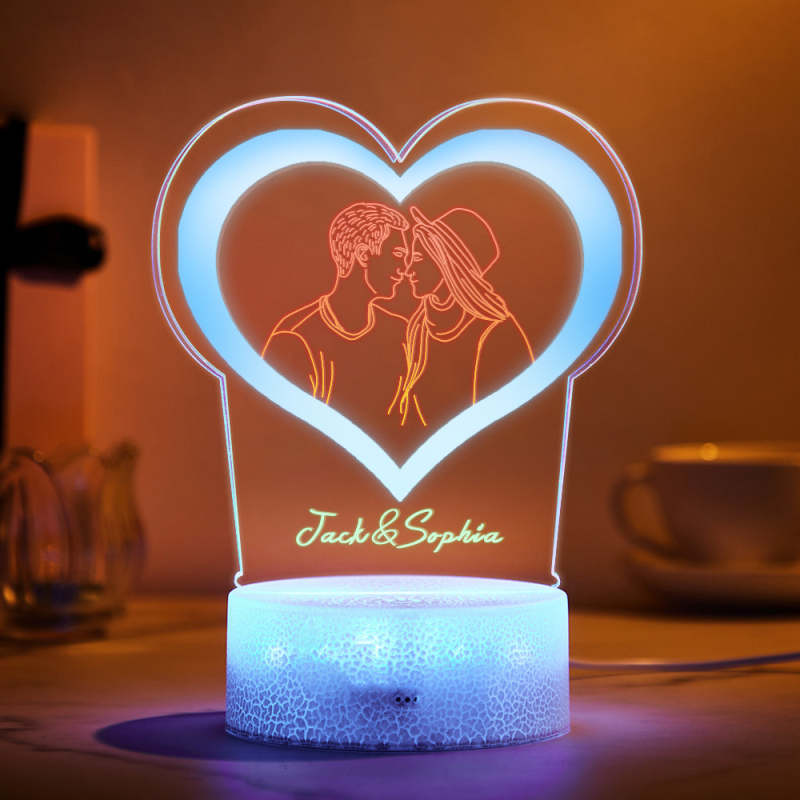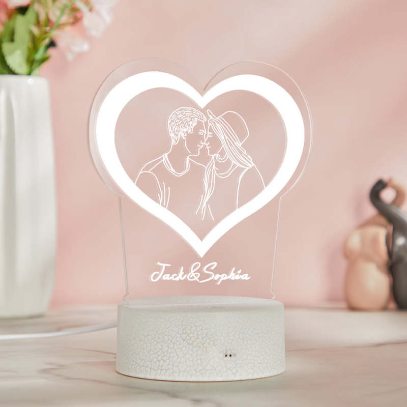 Custom Name Photo Lamp Personalized Engraved Portrait Heart shaped Night Light Best Gifts