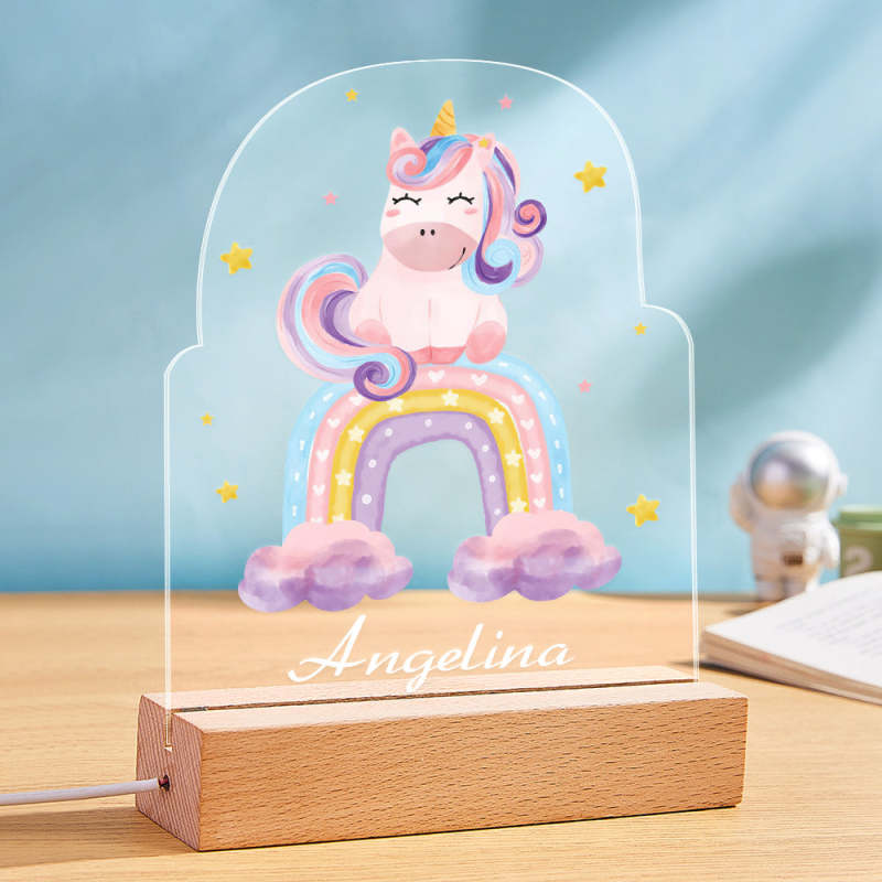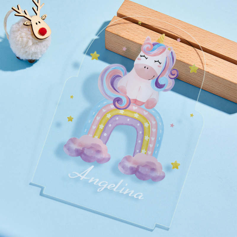 Personalised Name Sign Led Night Light Boho Rainbow and Unicorn Nursery Decor